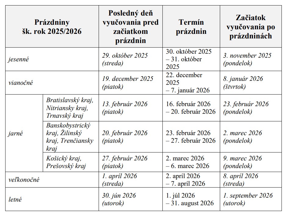 Nástup do školy: v pondelok 1. septembra 2025 (Stretneme sa na svätej omši v Bazilike sv. Egídia o 8:00)